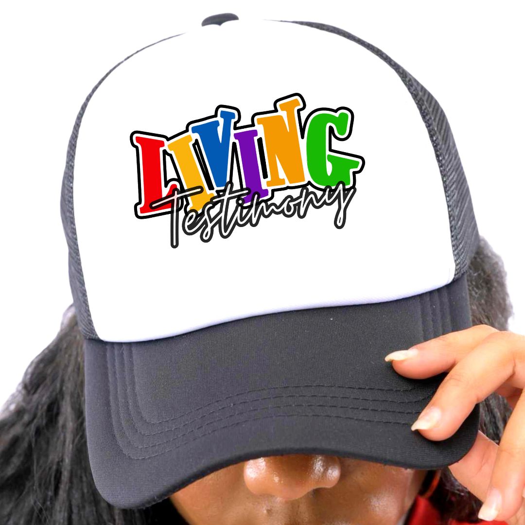 "Living Testimony" | Black & White Mesh Back Foam Trucker Hat |
